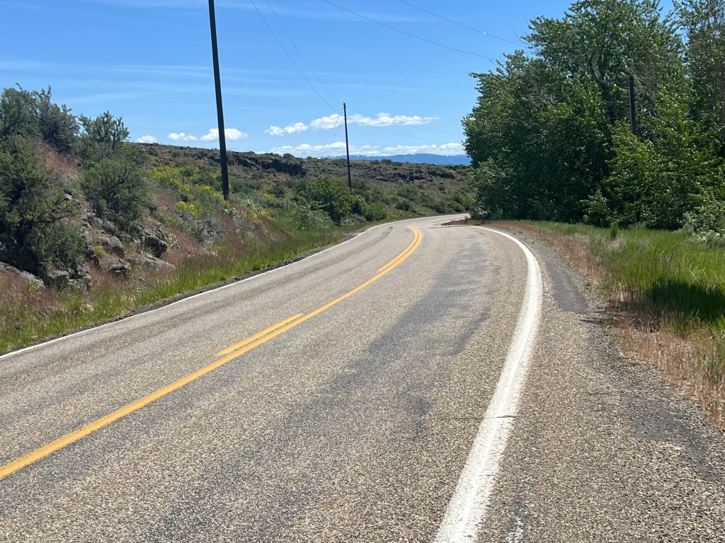 This went on for about ten miles and then I crossed over to the other side of the bridge and entered Idaho. I cannot lie and tell you that it didn’t mean that much to me, but to knock off a state felt good. I was so excited I stopped to take a picture, could not unclip, and crashed to the ground. Nothing broken on me or the bike (except my pride), so I picked myself up and started the 10 mile climb. It was probably a very lovely climb but it was hot and long, so I will have to guess at the first part.