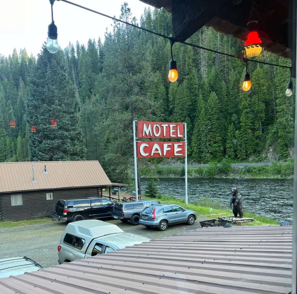I arrived at my hotel which was situated right on the river. Itβs a combination of hotel, cabins and RVs. It has a restaurant and store, the only one of each for miles around.