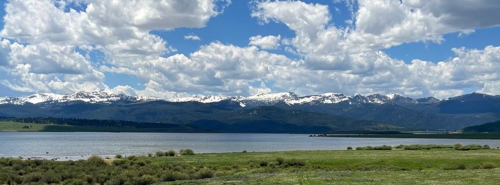 Lake Hebgen is big. Hebgen Lake is a reservoir created by the Hebgen Dam. The Lake is 15 miles long. I saw boating out on the lake and the tall mountain peaks serve as a glorious backdrop.