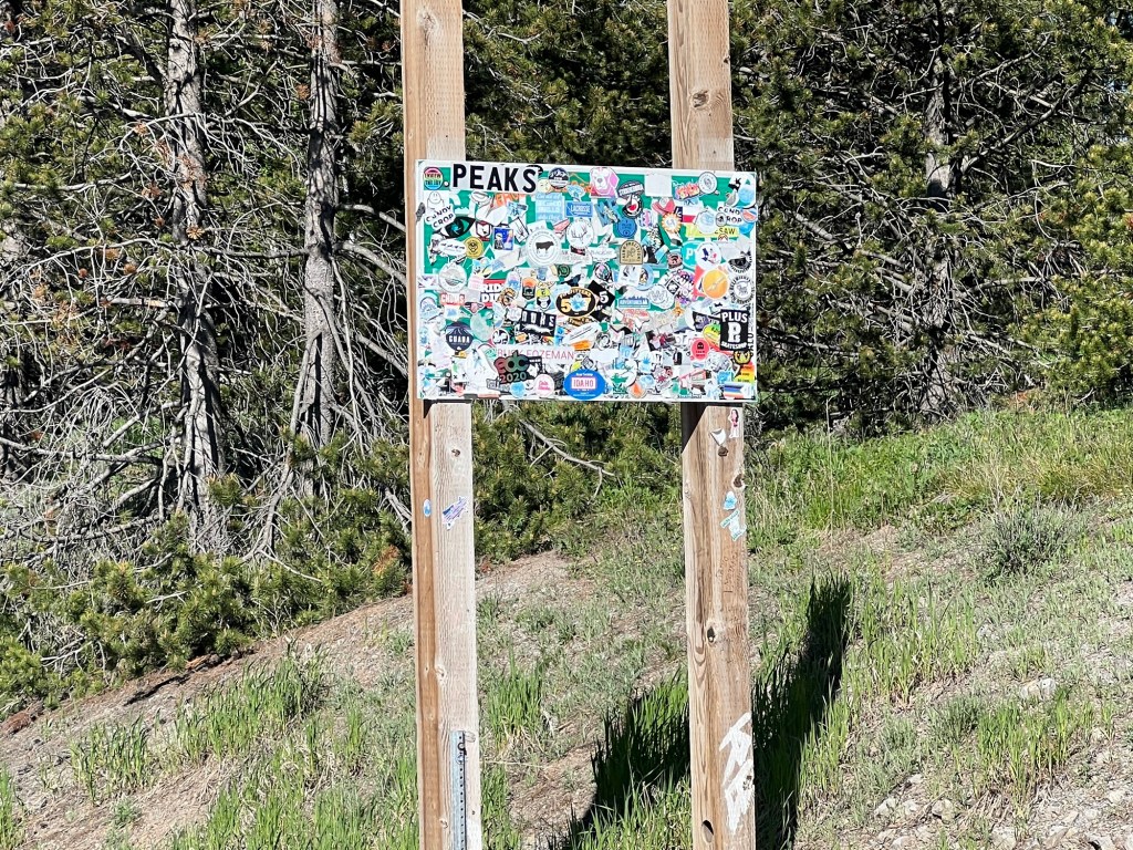 Eventually, I started climbing and when I got to the top I said goodbye to Montana and was greeted by my old friend Idaho. The tradition for Idaho state signs (maybe others states as well but I have seen it most on Idaho state signs) is for individuals to put stickers on them. I tried to find out if there was some meaning to this, but alas my research came up short.