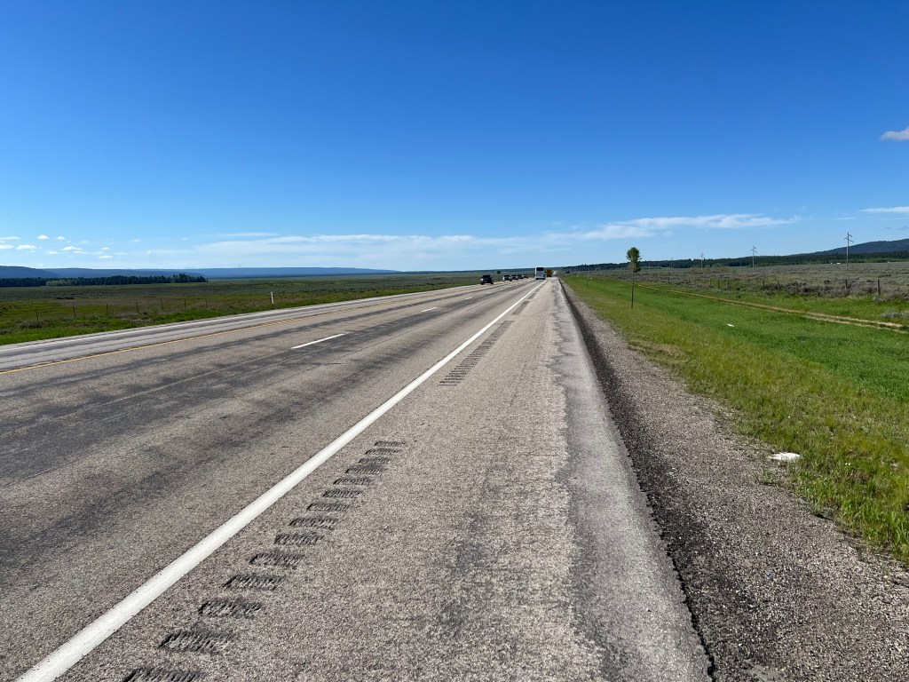 The second option involved about 100 extra miles but less traffic. The guidebook states that riding through Yellowstone Park involves “narrow roads and heavy traffic with lots of RVs during the summer”. I had decided before the trip began to take the second option. After seeing the traffic in West Yellowstone and the crazy driving, I knew I had made the right choice.