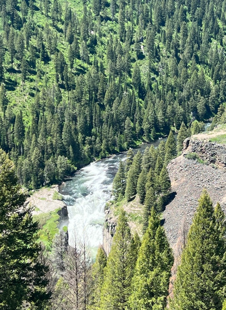 On the Byway was a sign pointing to a scenic overlook of the Lower Mesa Falls. I almost bypassed it but I am glad I did not. The Henry’s Fork River has cut a deep chasm in the valley and has created a large waterfall. There is an Upper Mesa Falls but unfortunately I must have missed it. The Lower Mesa Falls are spectacular and I highly recommend searching them out if you come out this way.