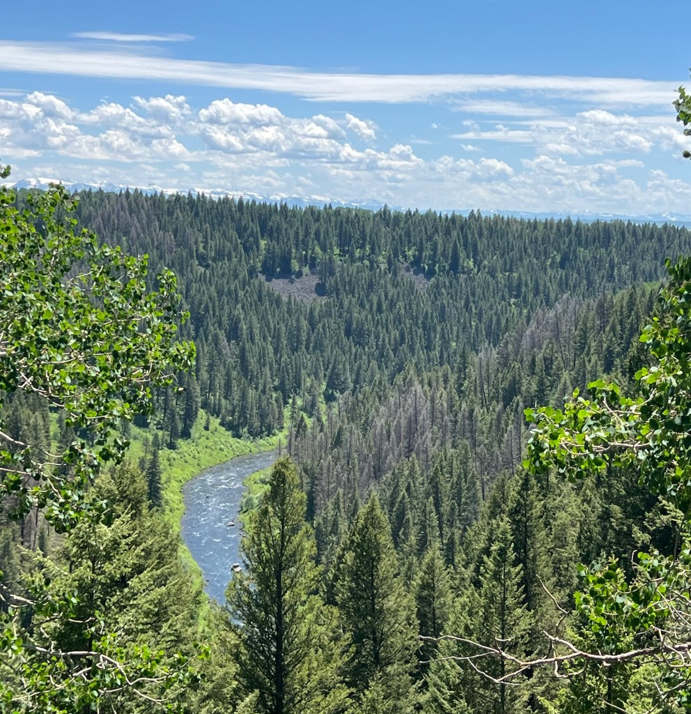 Traffic was still heavy so I was glad when my route took me off the main highway onto the Mesa Falls Scenic Byway. Traffic dropped off precipitously, with no commercial traffic whatsoever.
