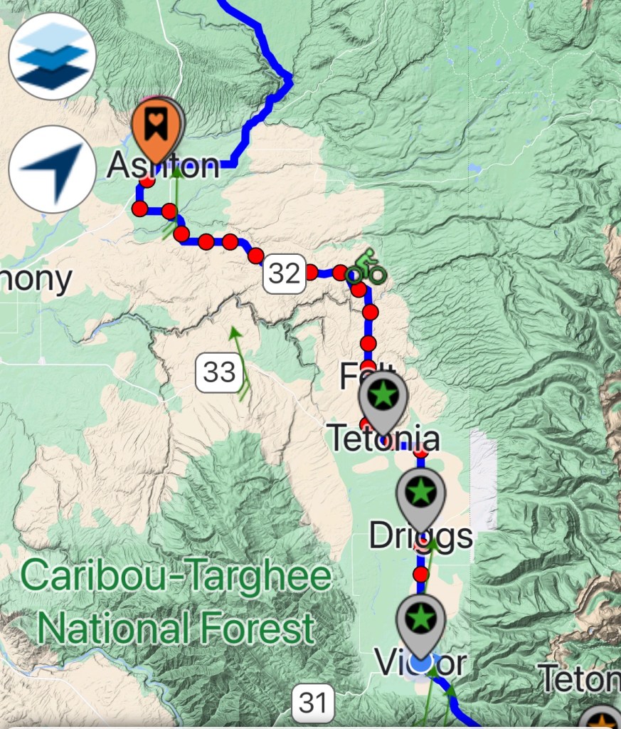 I went through Driggs, which looks like a nice little town that I would have liked to explore, but I wanted to keep moving so that I could nail down plans for tomorrow’s transport to Jackson, Wyoming.