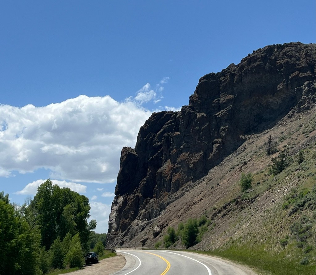 I kept descending until about six miles before Hot Sulphur Springs, when I had to make a right and go east on a new road. Going east meant that I had a strong headwind, but today it did not seem to bother me. Six miles into a headwind after a great ride is much easier to handle than 30-40 miles into a headwind when the scenery is not as exciting. The rock formations on the road during this last section were fantastic.