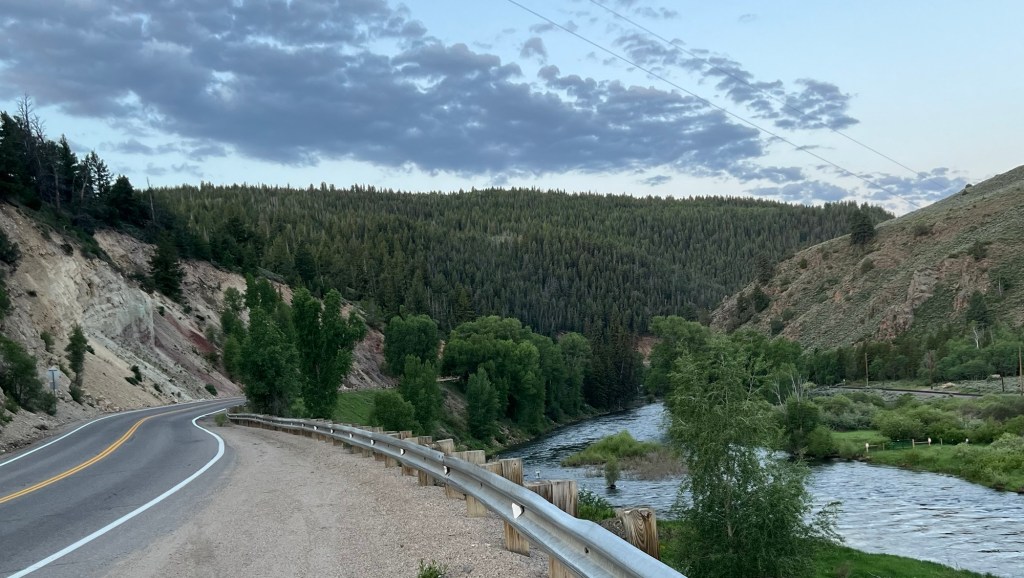 According to news reports, it was supposed to rain along today’s route beginning at noon. My route consisted of 17 miles west to Kremmling, Colorado and then turning due south for 40 miles to my final destination of Silverthorne, Colorado. According to the wind reports, the wind out of the south was not meant to get ridiculous until about noon (silly wind reports). Since noon seemed to be the common theme for wind and rain, I decided on an extremely early start.