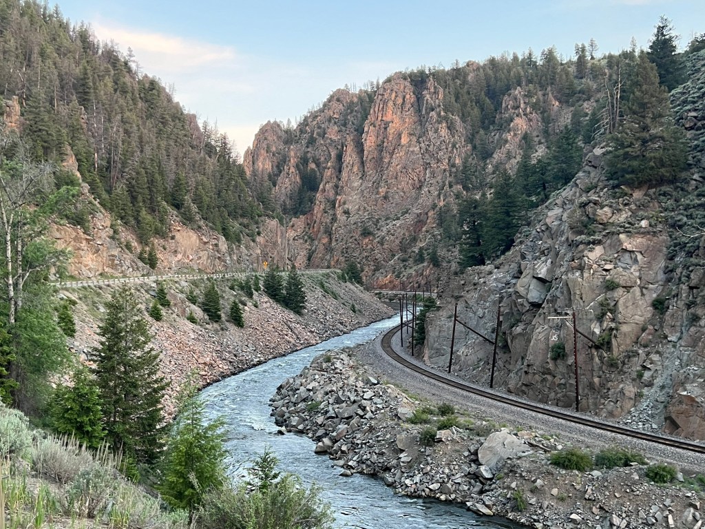 The canyon had sheer rock walls with the Colorado River at its base. Alongside the river were railroad tracks with the roadway about one-third up the rock walls. The road twisted along with the Colorado River so that each turn had the element of surprise. I loved it.