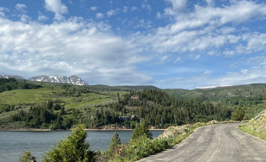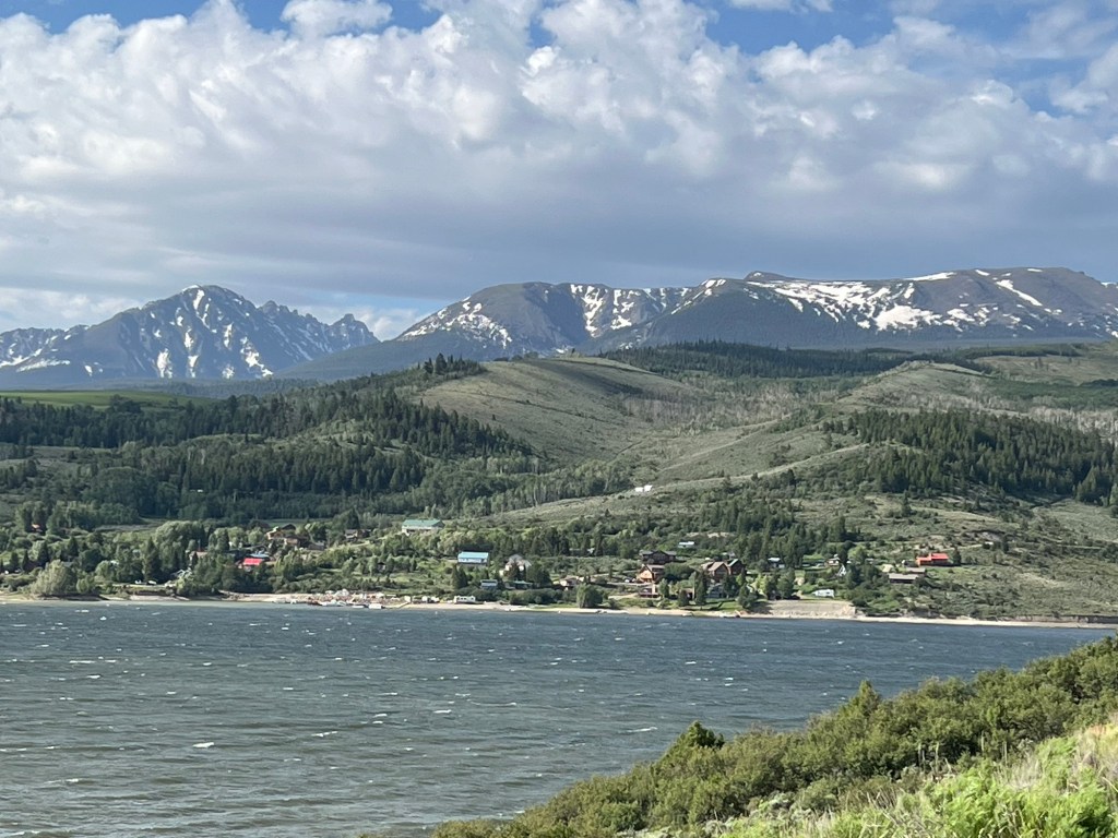 After this nine mile section, I came upon the Green Mountain Reservoir. The wind was so strong that it was creating whitecaps in the water. My route took me off the highway onto a scenic loop around the reservoir. Although this increased the mileage, the roads twisted and turned and had some trees to block some of the wind.
