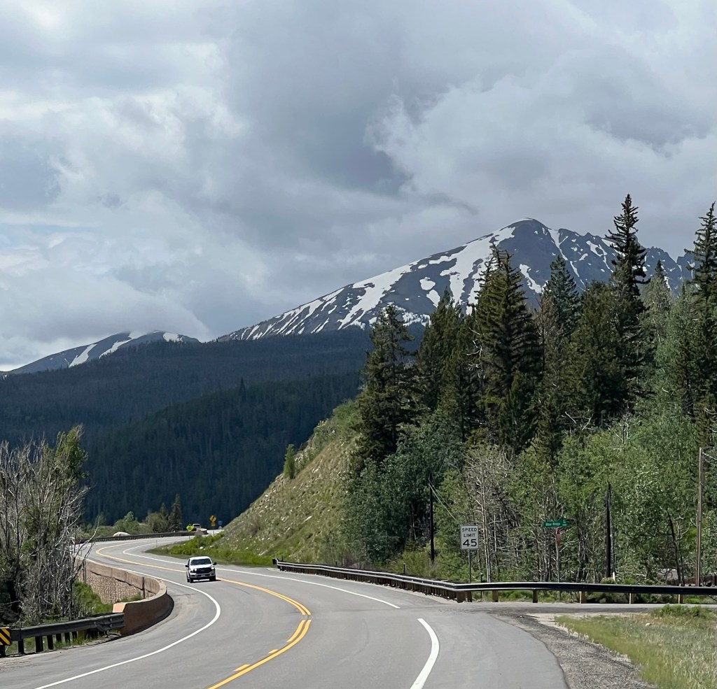 To the extent that I could enjoy the scenery, the Blue River ran along the length of the road. In addition, the peaks of the mountains seemed close enough to touch. Silverthorne sits at 9,035 feet, so it basically is at the same height of a lot of the peaks.