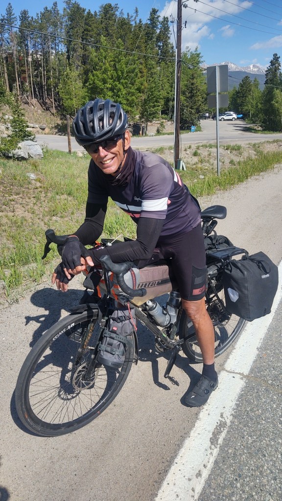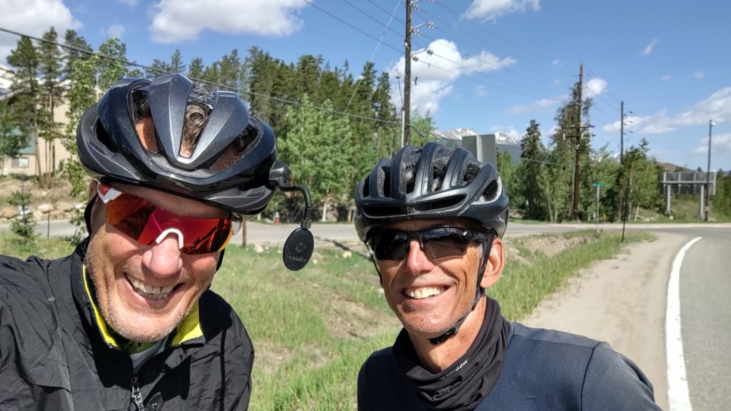 Another eureka moment, it’s Brad Seavoy, a friend and fellow rider from Elmhurst (part of our EMC2 team). Brad had been scheming (yes I will use that word-scheming) with Leslie about meeting up with me in Colorado. Brad was coming out later in the week to Colorado but altered his schedule to catch me in Breckinridge. He got a room in the same hotel I booked for the night and will also be riding some of my route tomorrow (he will get to see the luxurious accommodations that I have been sleeping in). He was also able to bring a care package from Leslie. I am lucky to have these kind of people in my life.