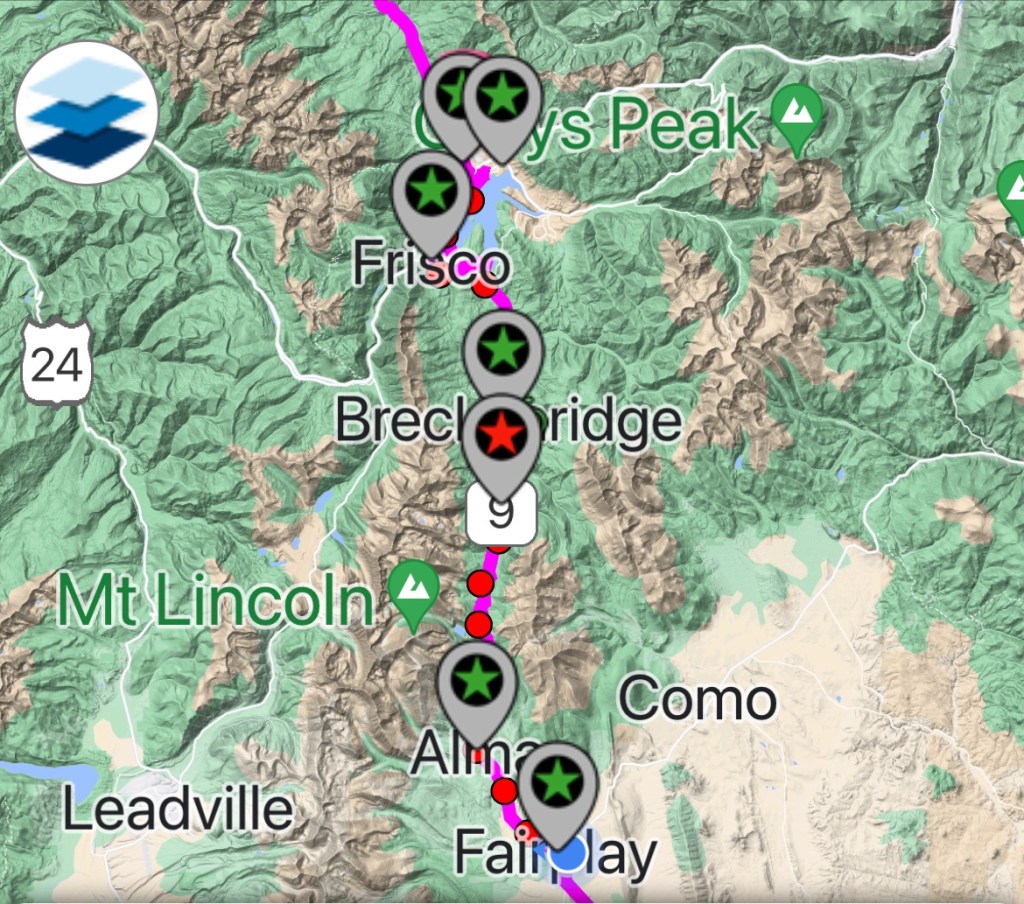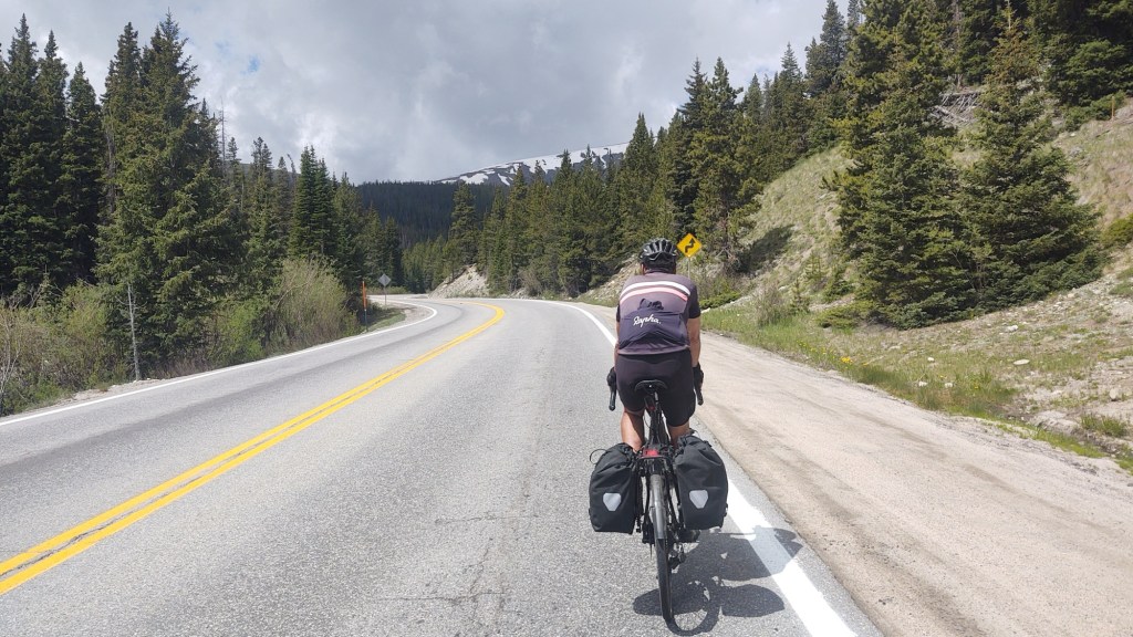 I planned on today’s route to be short, since the road would take me up and over Hoosier Pass (11,542 feet of elevation). Hoosier Pass is the highest elevation for me on the whole trip. Silverthorne is at 9,035 feet, so the climb is really only about 1,500 feet. It’s not the length of the climb that worried me, but the low oxygen levels at that height. Once you get above 8,000 feet, the air starts to get thin.