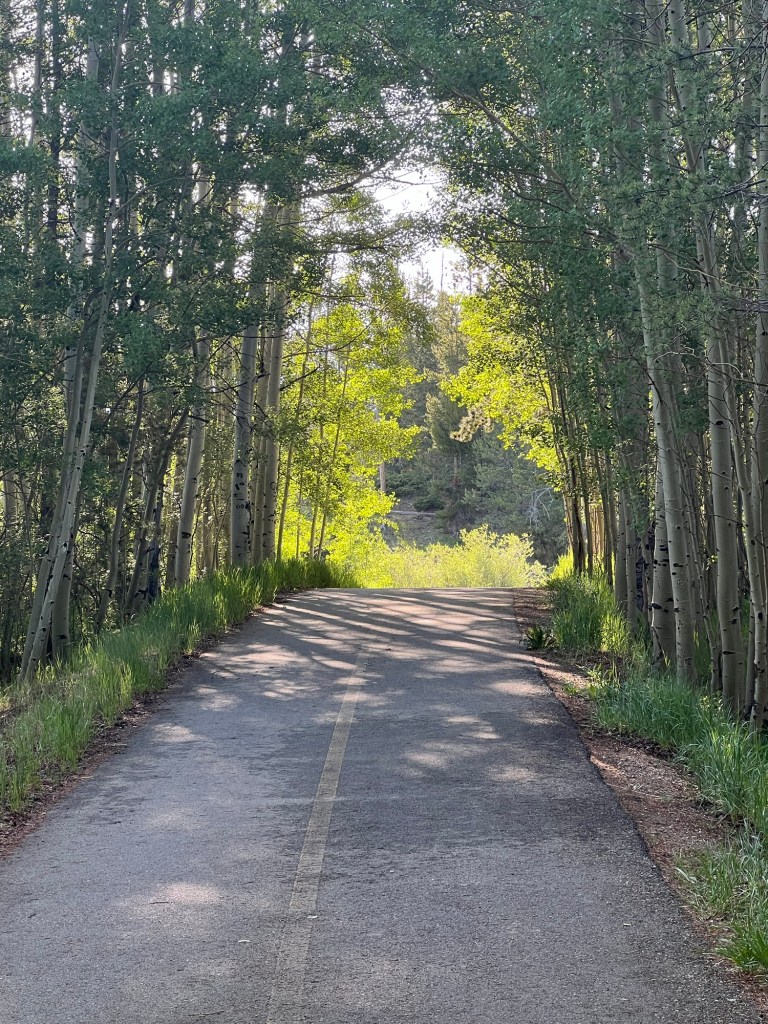 I was in no rush considering the short mileage, so I stopped multiple times for pictures. There were lots of opportunities. At one such stop a policeman came up to see if I needed any help (makes me wonder what kind of vibe I am sending out to the world-desperate, forlorn, needy, etc.). We had a nice chat. He is an east coast native who moved out to the area a few years ago and he is an avid mountain biker. He said the bike path that I am on branches out and goes for miles to many of the ski resorts and surrounding towns.
