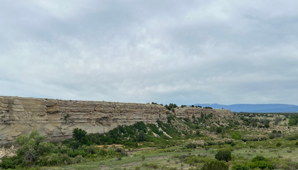 I left at about 5:30 am and the skies were cloudy and the wind seemed to be at my back. There was no traffic and I left Cañon City behind. The road gently descended and I was returned to surroundings filled with dry riverbeds and rocky outcroppings.