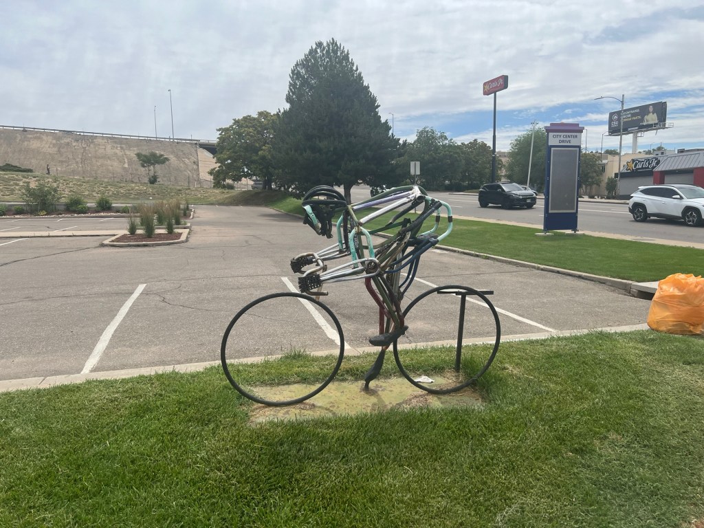 The first ten miles went by quickly, and I was able to keep a speed of about 20 mph, much faster than I have typically been able to get my big machine moving. The scenery was a little barren until I came across a Federal prison in Florence, Colorado. According to Wikipedia: