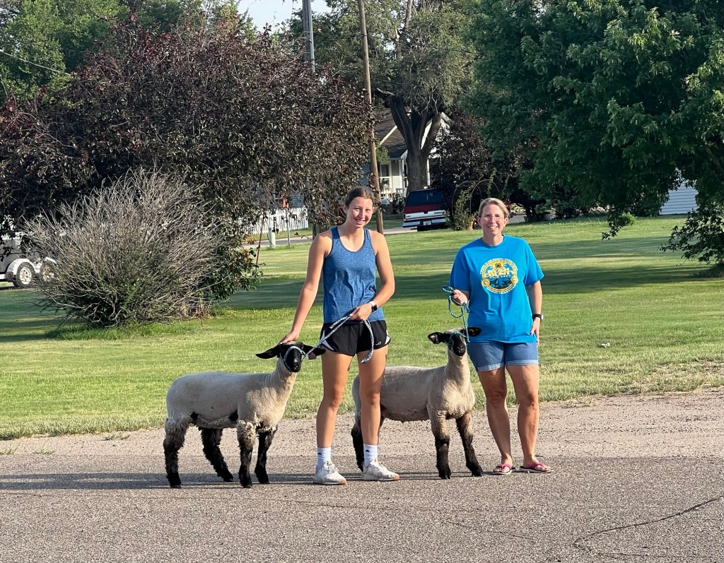 As I was leaving town, I saw two women up ahead walking what looked like two large dogs on leashes (I was thankful for the leashes-did I mention my developing fear of dogs?). As I got closer, I realize they were not two dogs but two sheep walking calmly with the ladies. Their name were Sally and Rachel (the women, not the sheep) and I asked for a picture since I am not accustomed to seeing such a sight in the suburbs of Chicago. They were delighted.