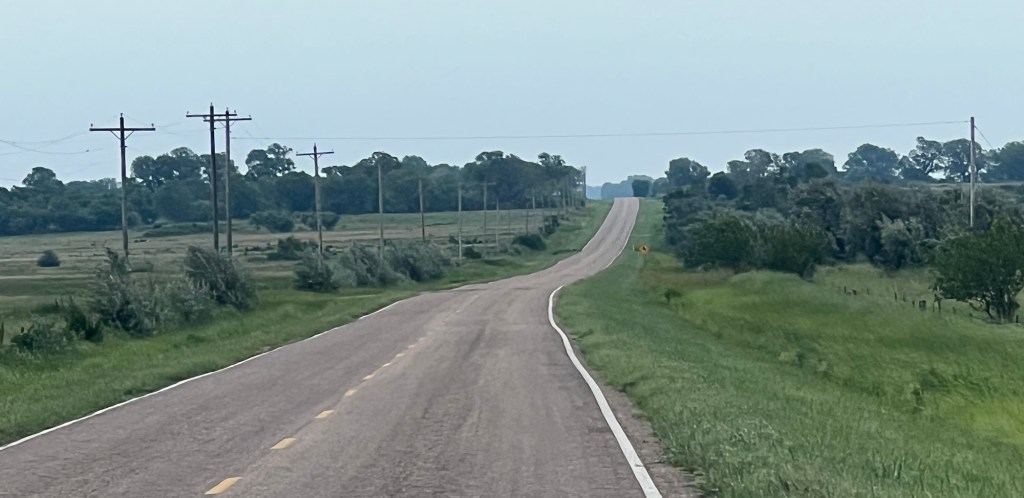 The road was what I imagined the Kansas segment of the ride was going to be-country roads with very little traffic. It reminded me of back home when we would ride west of the Fox River. In addition, trees reemerged along the route. I didn’t realize until halfway through the ride today that they were back. It seems like I have been riding in a treeless landscape for so long.