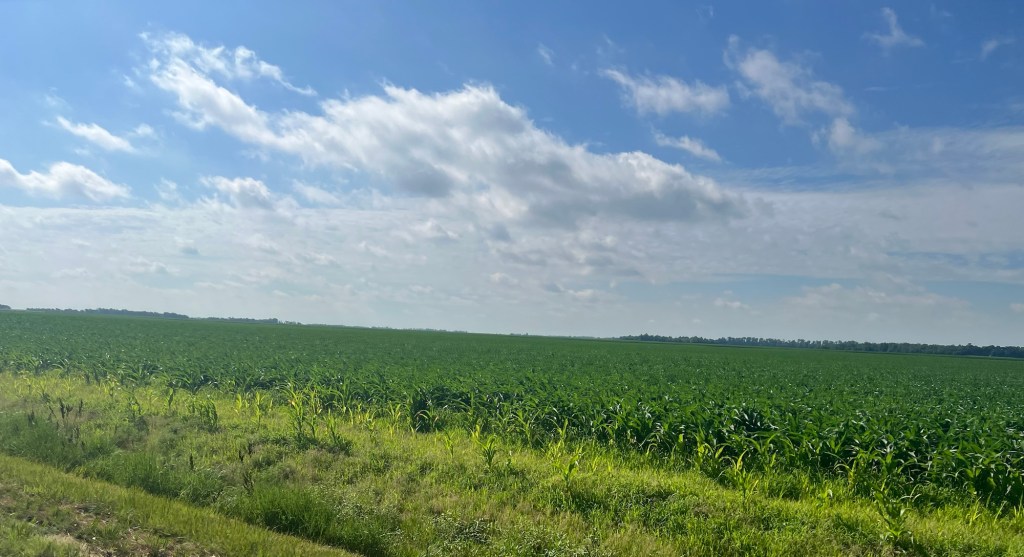 I left before the sun was up and headed south for 14 or 15 miles. The wind was coming straight out of the south so the beginning was slow going. The scenery was farmland, farmland, farmland, not much to blog about. This beginning part was on a two lane state highway with a very wide shoulder with thankfully no rumble strip down the middle.