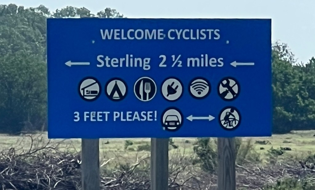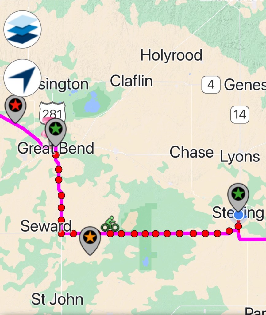 Today was a no supply zone region so I just had enough water to get to my destination. My hotel is in Sterling, Kansas, which is about two and a half miles north of the route.