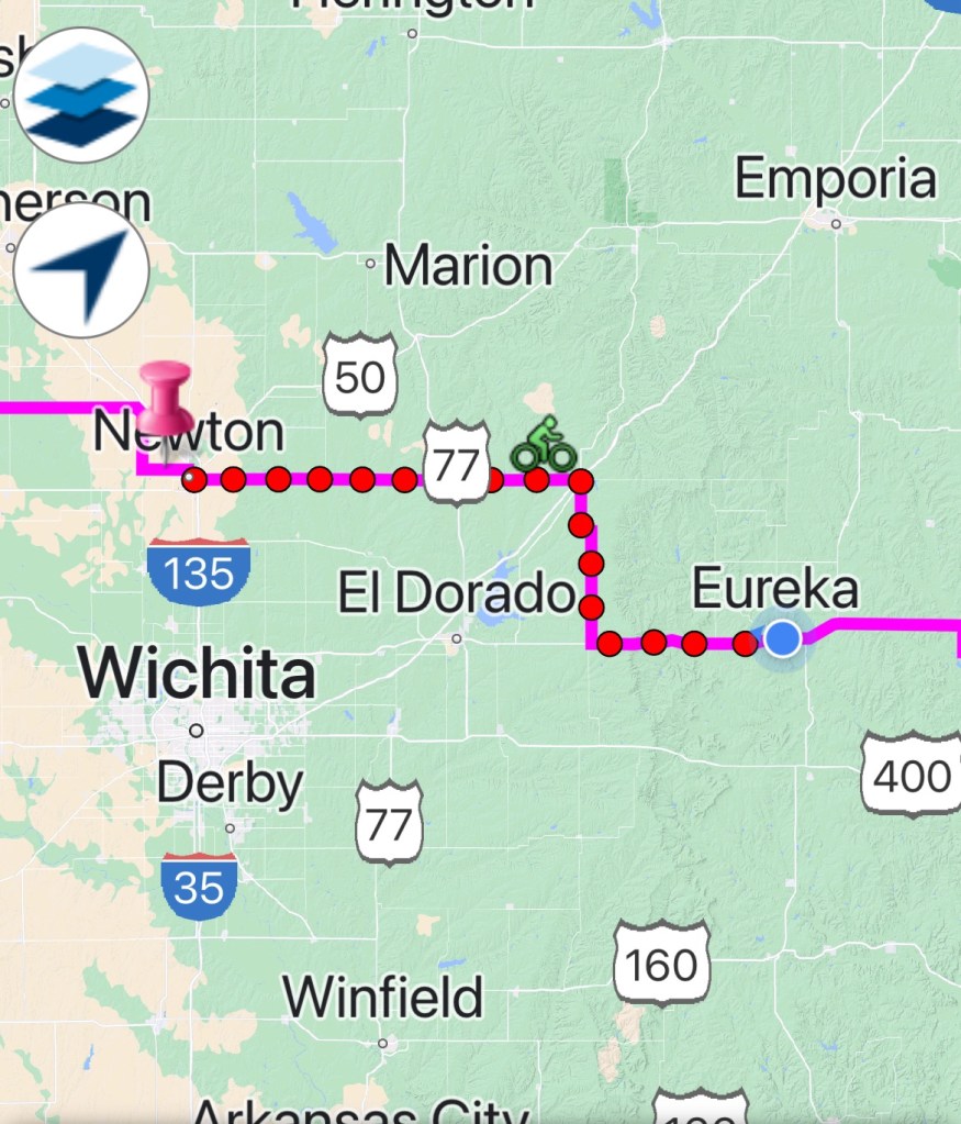 As I rode away from Newton, I started to enter the Flint Hills. Throughout the day, there was not much flat, just a series of ups and downs. If I didnāt have any wind, this would have been fun, but as the day progressed, the wind picked up steam and I found myself having to pedal on the downhill sections.