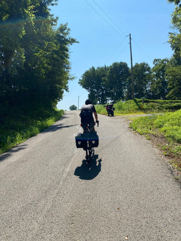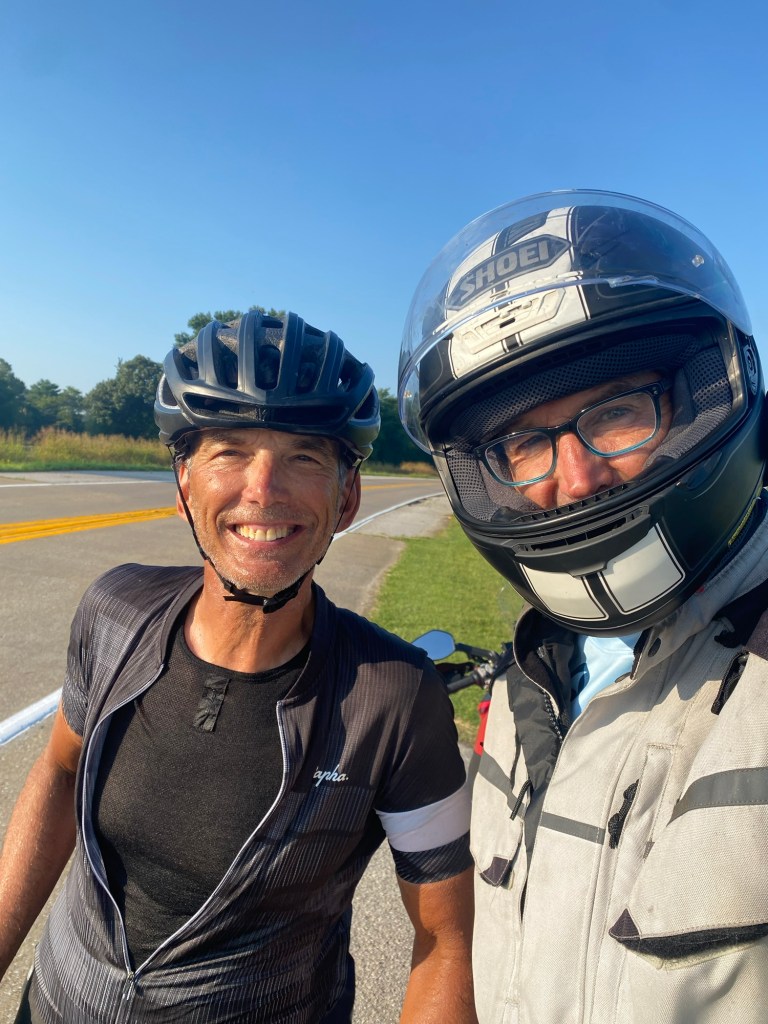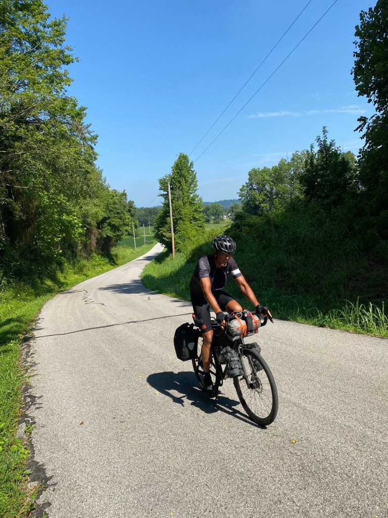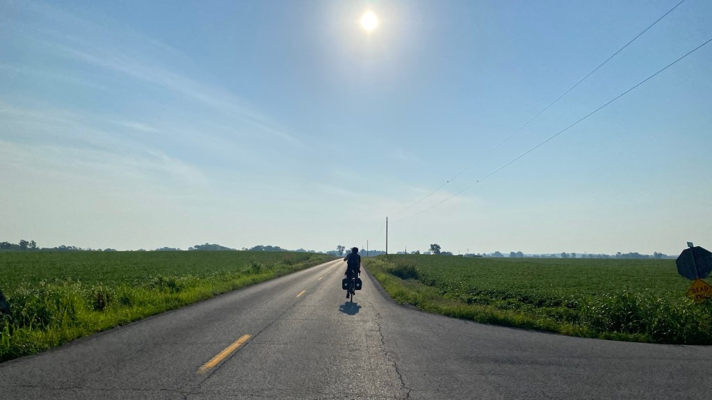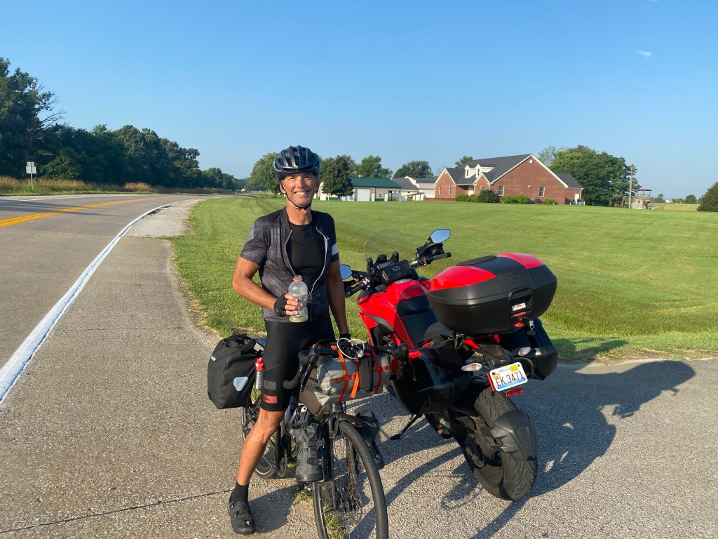 Another day, another heat advisory. I was nervous about the day but two things gave me some confidence: 1) I rode the same distance yesterday and I survived in the heat and 2) my friend Tim Radcliff had spent last night in Louisville, Kentucky and would meet me on my route on his motorcycle (with Gatorade, gels, bars and water). Little did I know how much I would need his kind and patient support today.