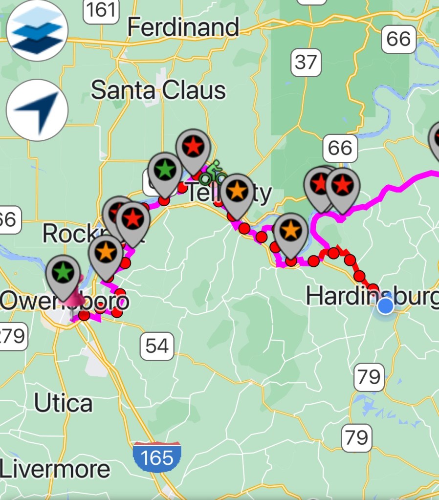 To add insult to injury, when we left Cloverport my old friend Google routed us up a super steep climb to get to the main road. I unclipped and bent over to push my bike up the last 20 yards when I started coughing uncontrollably. I thought maybe someone had just sprayed insecticide or fertilizer because I was getting a chemical burning sensation in my throat. I got to the top of the hill but it took me a few minutes to stop coughing.