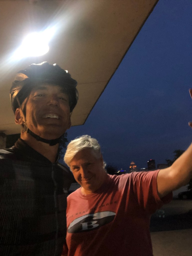 Paul could tell that I was feeling low when we spoke at 3:00 pm on Tuesday. Before I knew it , he had booked an 11:00 pm red eye flight from San Francisco to Columbus, Ohio, rented an SUV and drove down to my hotel outside of Louisville by 1:00 pm Wednesday, with little to no sleep. He said he was going to drive the SUV as my SAG wagon until Saturday night, when he has to fly back home Sunday morning.