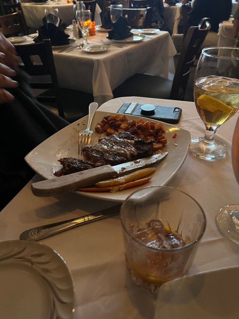 With our larders stocked, Paul’s next act was to take me out for a nice steak dinner. The restaurant was good with a piano player and the feel of an old school steakhouse (and made a fine old fashioned). It was so nice to eat at a place where I was not ordering from a counter or at a convenience store.