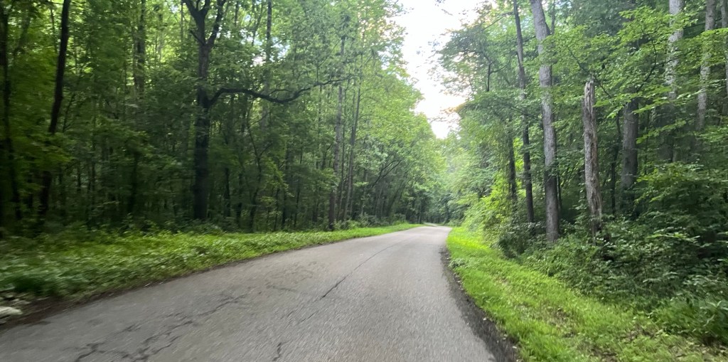 Since we were now on Eastern Time, we set off at 6:00 am. The route would hug the Ohio River for the first ten miles and then climb away from the river atop a bluff for the next 40 miles. At the town of Madison, Indiana, the road would drop back down to the Ohio River’s edge for 20 miles, cross the Ohio River into Kentucky, and then climb up from the river to our final destination of Sparta, Kentucky.