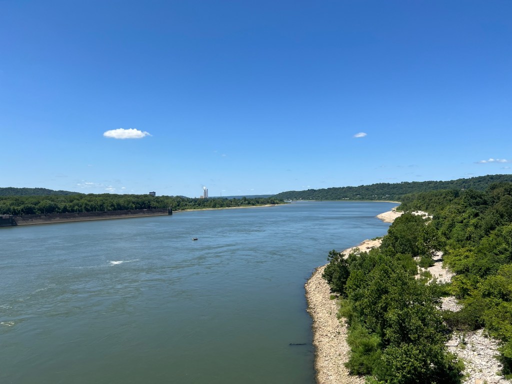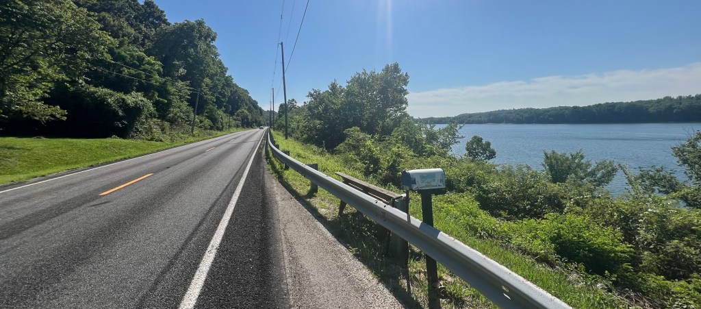 The first ten miles along the Ohio River leaving Jeffersonville, Indiana was relatively flat with either tree covered roadway or glimpses of the river to my right. Throughout the day Paul would either hang back about a quarter mile behind me or go ahead and wait for me to arrive. With the weather the best it had been for weeks, all I had to do was pedal.