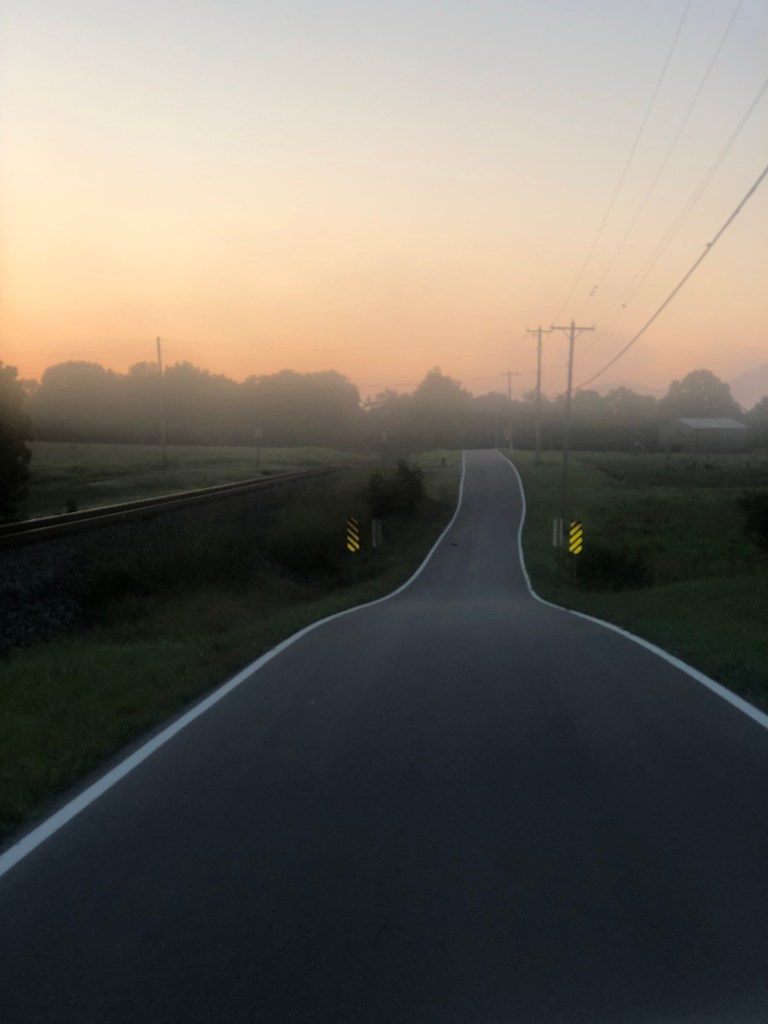 We left at 6:00 am and the first five miles were a steep descent with a good shoulder. I then turned onto an old road in good shape that ran parallel to the train tracks. It went straight up for a quarter mile and then rolled up and down. There was no traffic which was good since it was not even two cars wide.