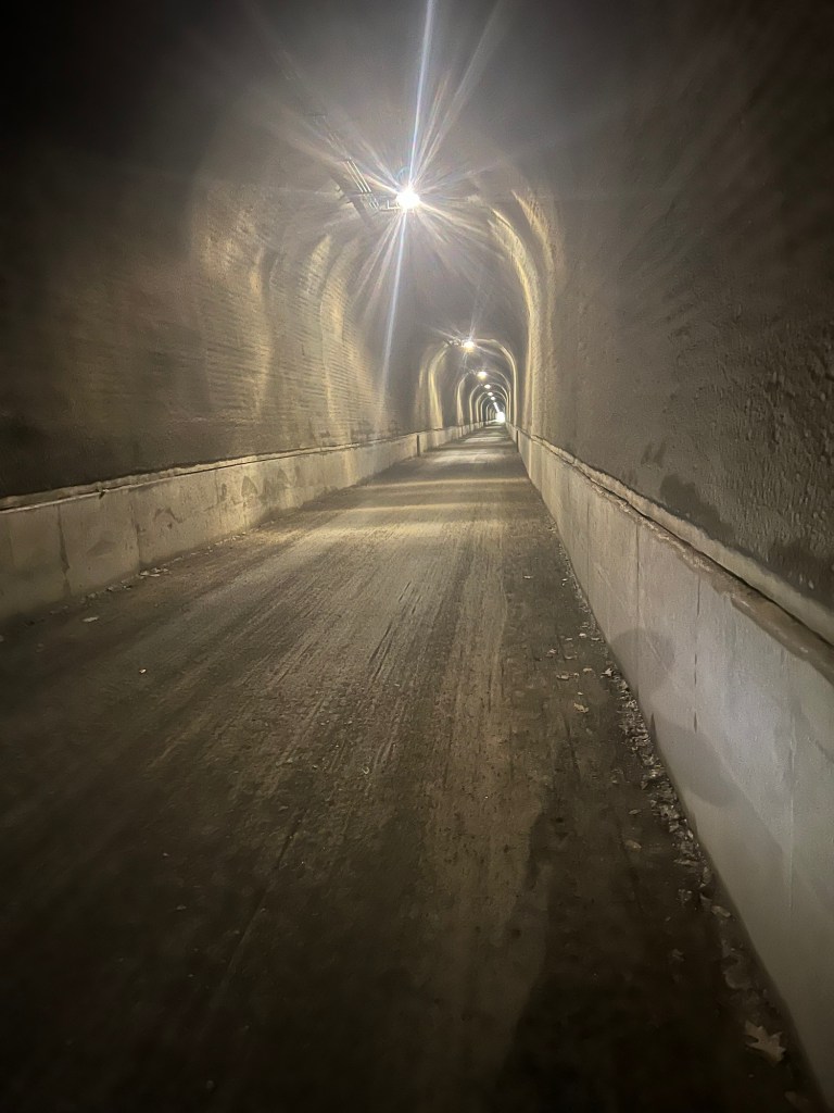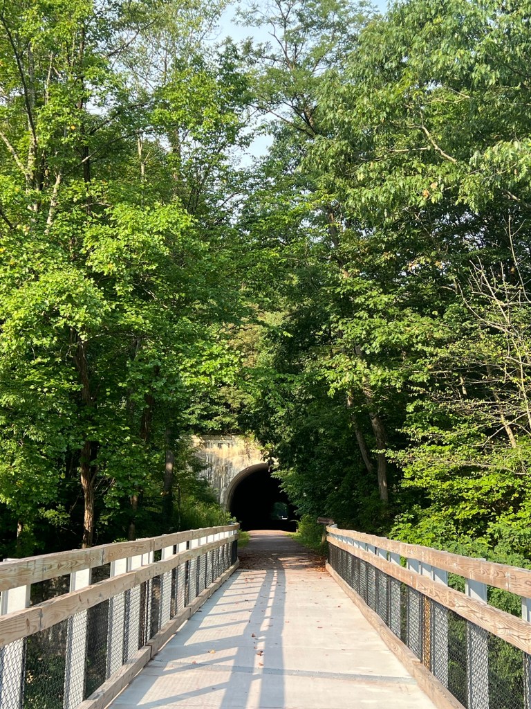 As today’s title suggests, the route was filled with multiple bridges and tunnels. I was thankful every time I went over or through them since their existence allows the trail to be flat. As with yesterday, when the trail crossed a road, the roads went either straight up or down.