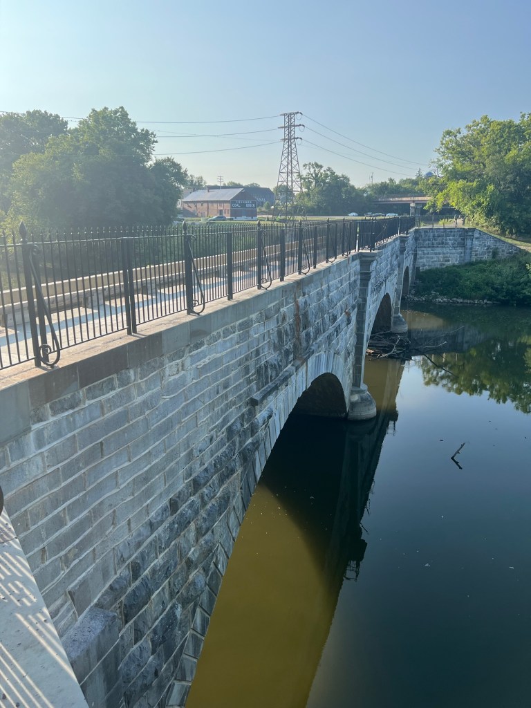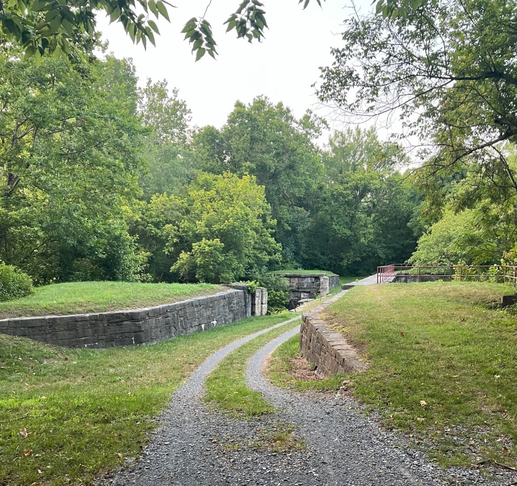 First is the Conococheague Aqueduct located at Williamsport, Maryland. Yesterday, I was amazed that they built a tunnel for the canal to flow through. Today it was an aqueduct over a river with one “lane” for the canal to go over and a towpath. It’s interesting to see the ingenious methods they used to get by these natural obstacles.