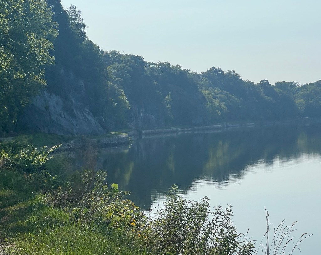 Second is the Big Slackwater Restoration located by Cedar Grove, Maryland. The towpath sits between the Potomac River and a sheer wall of rock. The river makes a tight loop, and you can look across and see the continuation of the path. Much of the towpath was destroyed by flooding, but a restoration project completed in 2012 rebuilt the lost sections using concrete and stone walls. It reminded me of walking along a parapet of a castle. I apologize for the pictures, I don’t think they do it justice.